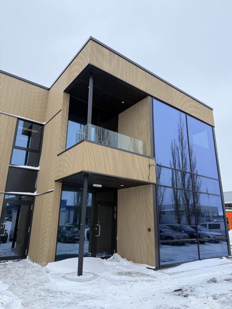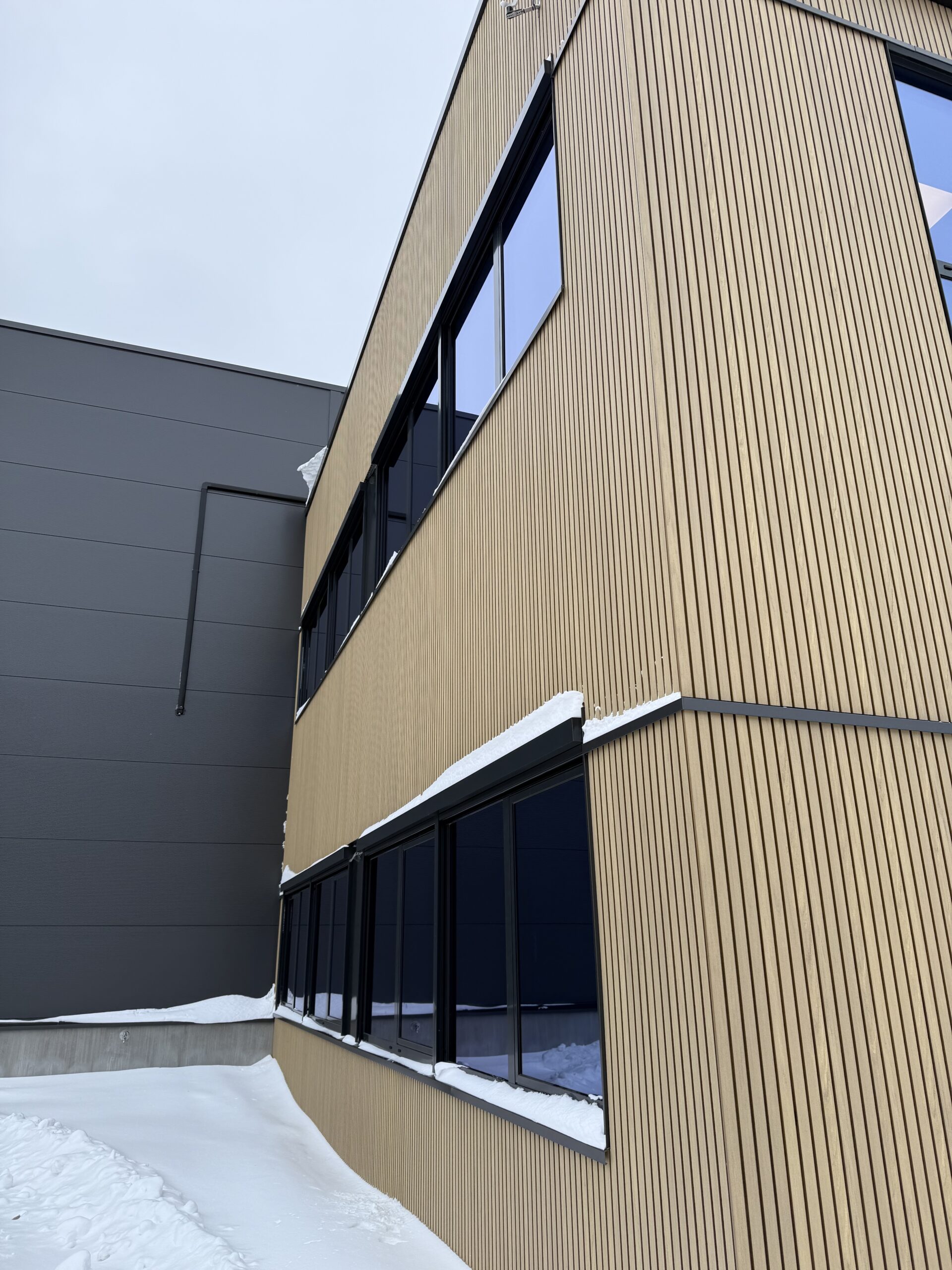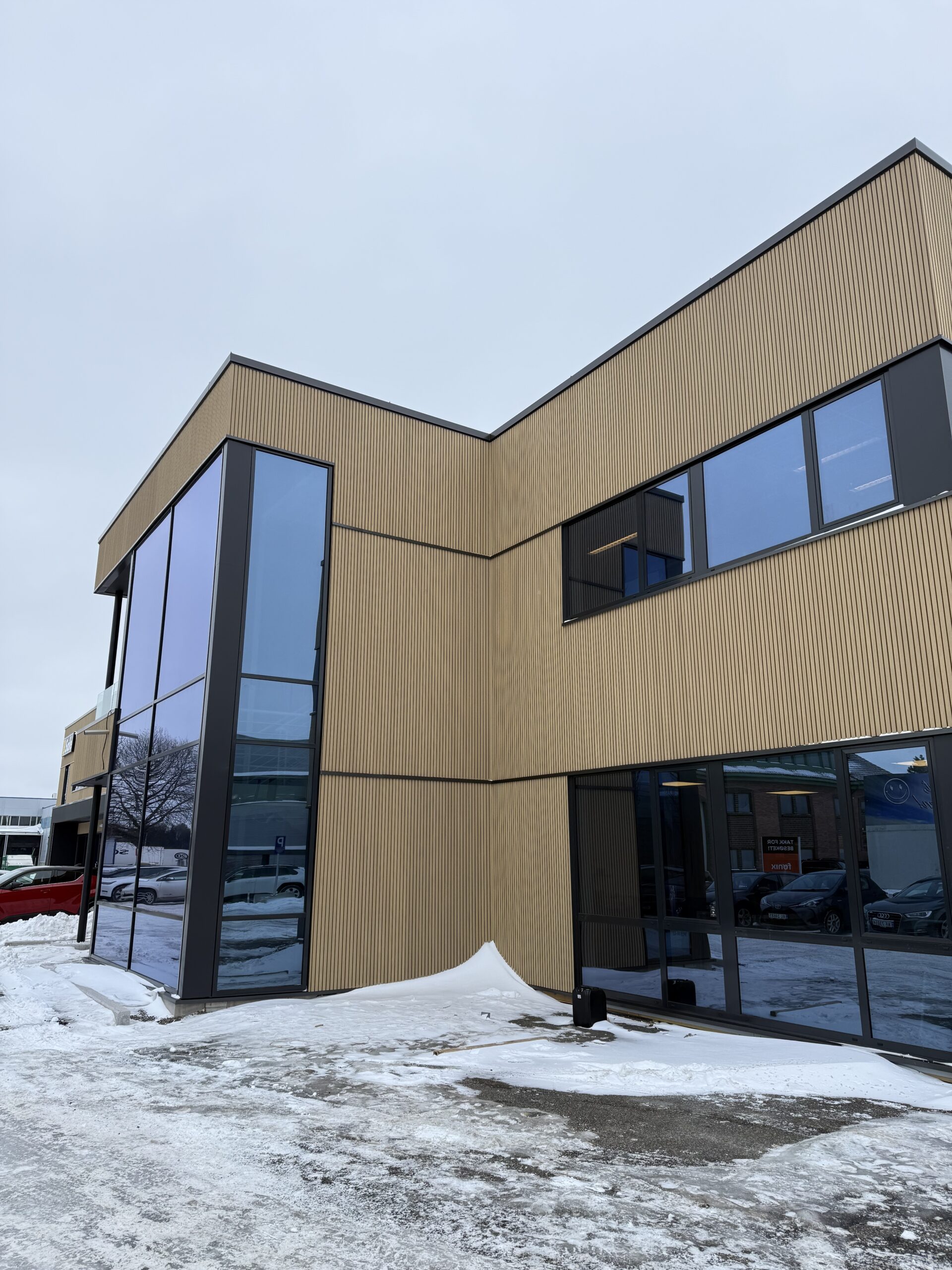 Prosjektet er levert til Søndre Eiendom og omfatter bruk av spileplater som en helhetlig løsning for byggets ytterkledning. Tarimatec spileplater er valgt for å skape en moderne trefasade som kombinerer estetikk, funksjon og lang levetid. Spilene tilfører fasaden dybde og struktur, samtidig som de fremhever byggets arkitektur og volum på en tydelig måte.